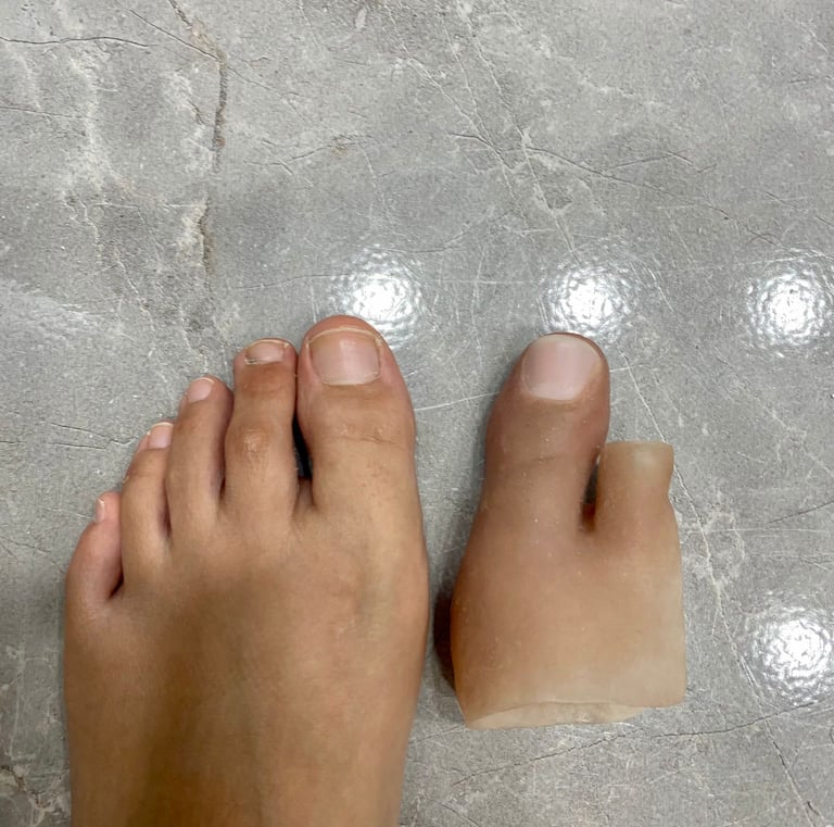 Kişiye özel silikon chopart ayak protezleri, kısmi ayak protezi, ayak parmak protezi için uzun ömürlü silikon kullanılmaktadır.
